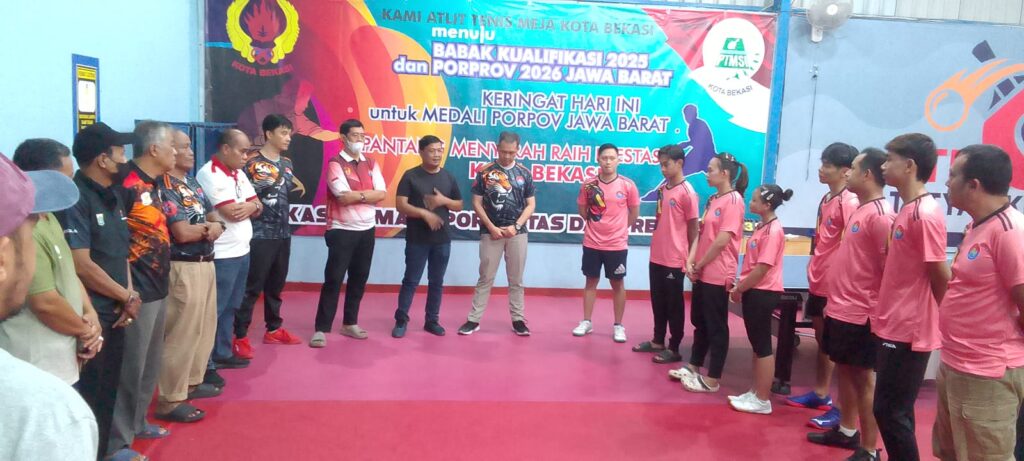KOTA BEKASI – Komite Olahraga Nasional Indonesia (KONI) Kota Bekasi melakukan kunjungan ke Persatuan Tenis Meja Seluruh Indonesia (PTMSI) Kota Bekasi untuk meninjau langsung kesiapan para atlet yang akan diproyeksikan mengikuti Pekan Olahraga Provinsi (Porprov) Jawa Barat 2026. Kegiatan ini sekaligus dirangkai dengan acara buka puasa bersama dalam suasana Ramadan 1447 Hijriah.